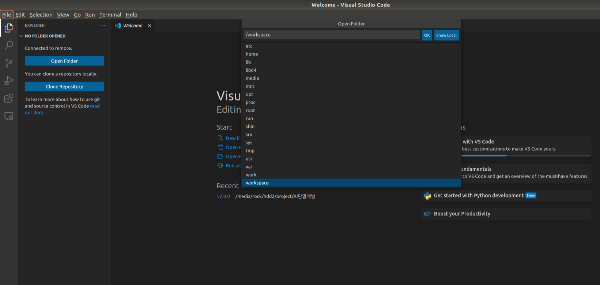 만약 docker container안에 작업을 하던 폴더 위치가 있으면 Open Folder를 해서 해당 폴더를 열어주면 된다.