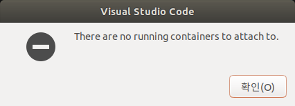 선택을 했을 때 만약 docker container가 없거나 실행되어 있지 않은 경우 다음과 같은 메세지 창이 뜬다.