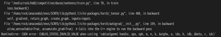 CUDA error: CUBLAS_STATUS_INVALID_VALUE when calling `cublasSgemm