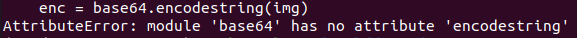 import base64를 해주고 base64.encodestring()을 사용하려고 했더니 base64에 encodestring라는 attribute가 없다는 에러가 발생했다.